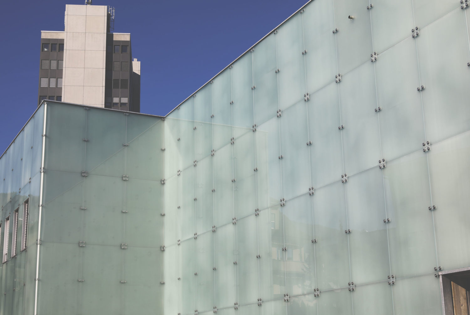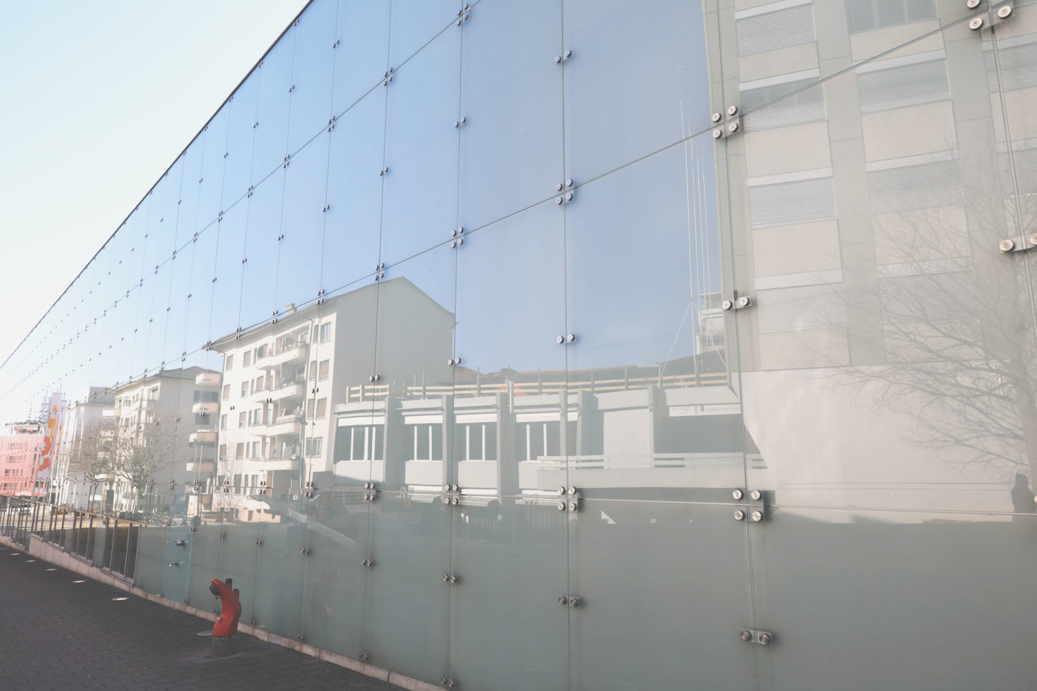 Energetische und konstruktive Sanierung der Gebäudehülle in Glas.